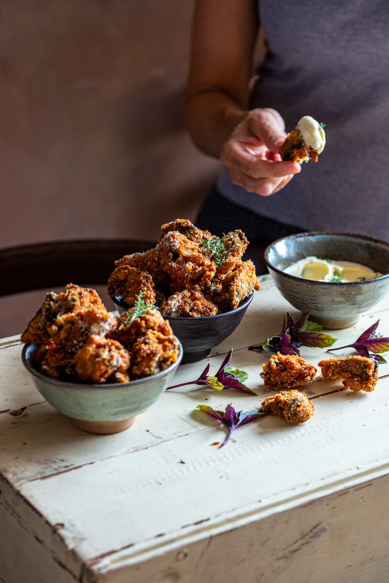 Funghi fritti con maionese speziata