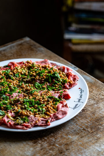 Insalata di Roast beef con lenticchie, senape e prezzemolo