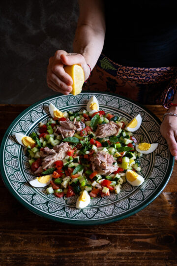 L’insalata tunisina, conosciuta anche come Slata Tounsiya o Salad Tunisienne, fresca e croccante, è un piatto semplice, perfetto per i primi pranzi e cene all’aperto. Ecco come prepararla in pochissimi minuti.! Ingredienti: Pomodori Cetrioli Peperone verde Mela verde Cipolla rossa Olive nere (facoltative) Tonno Uova […]
