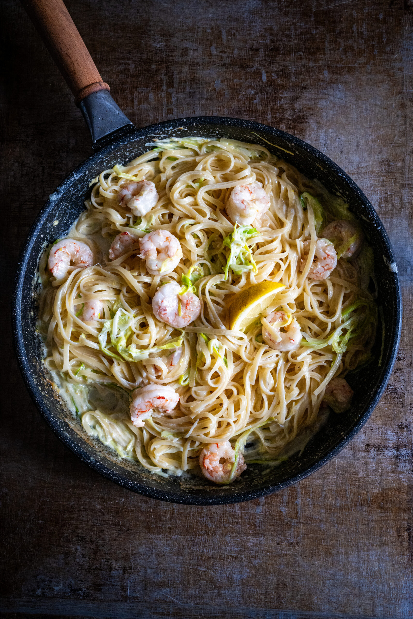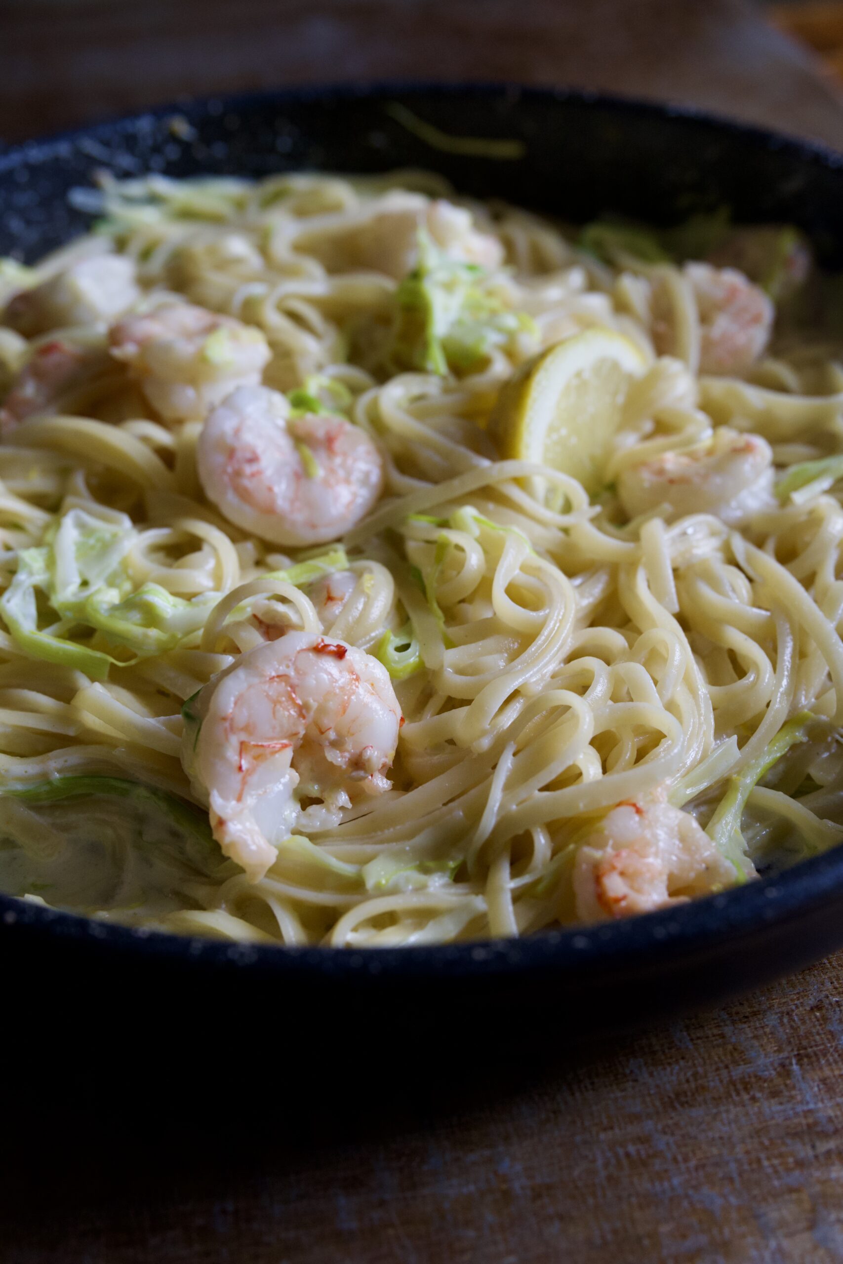 Alfredo di porri con gamberi