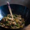 Aggiungete 7 cucchiai di rum e l’uvetta, abbassate la fiamma al minimo e lasciate ridurre per qualche minuto bagnando continuamente l’ananas finche non si forma uno sciroppo leggero e leggermente caramellato. Ripetere l’operazione per altre tre volte con il rum rimanente. In ultimo unite i grani di pepe di Sichuan e aspettate finché si formerà uno sciroppo denso e caramellato che ricoprirà l’ananas. Infine, aggiungete il peperoncino e continuate a irrorare per ricoprire completamente l’ananas.