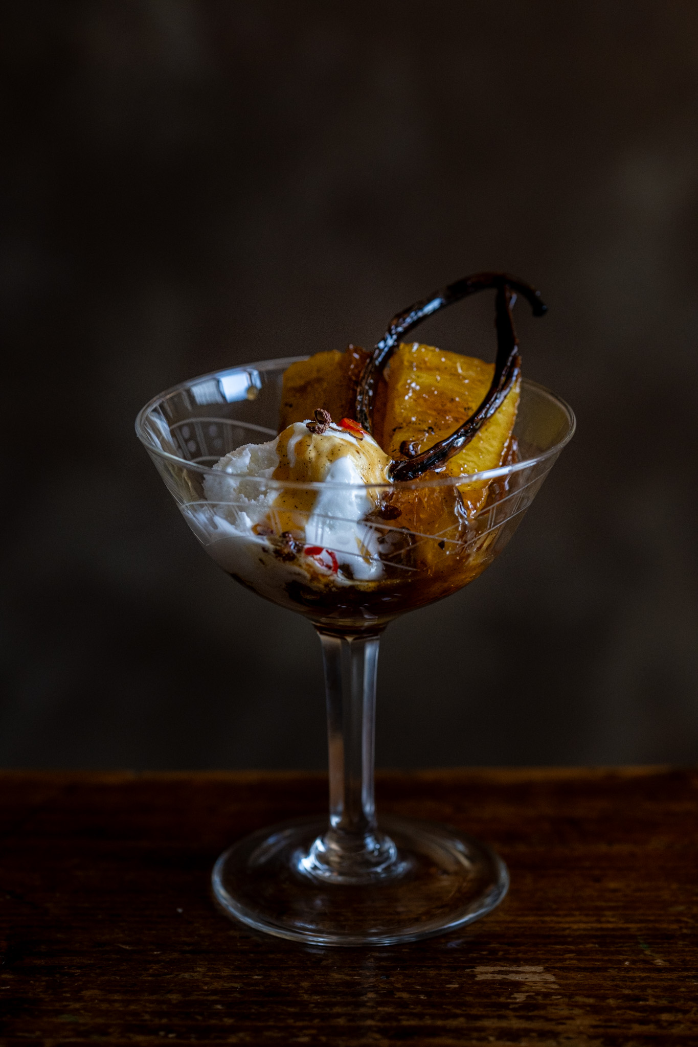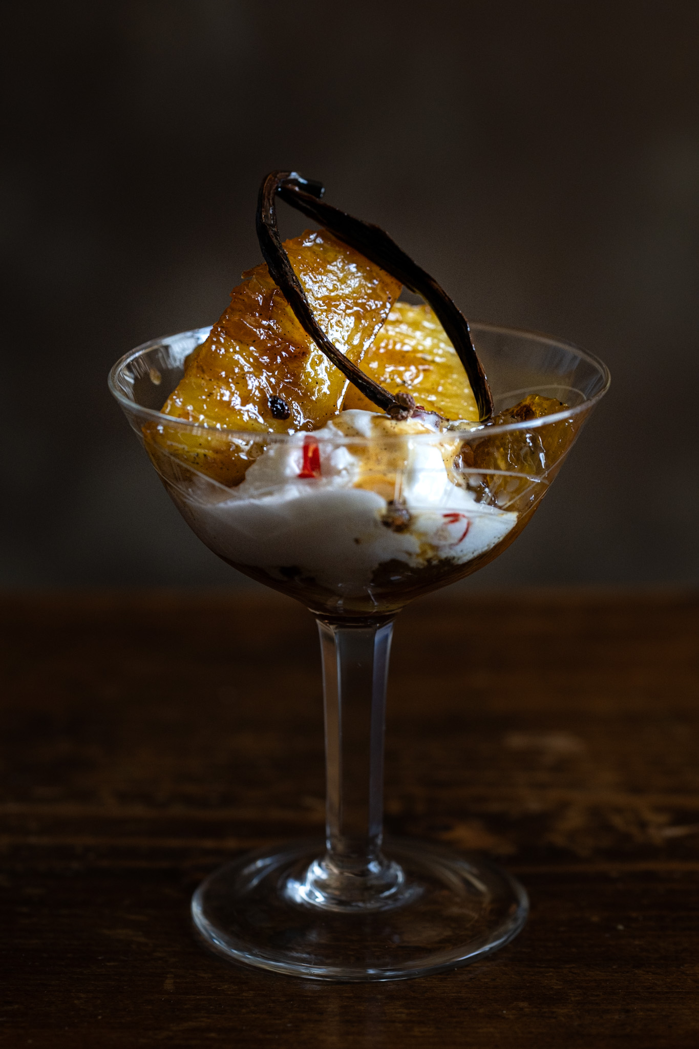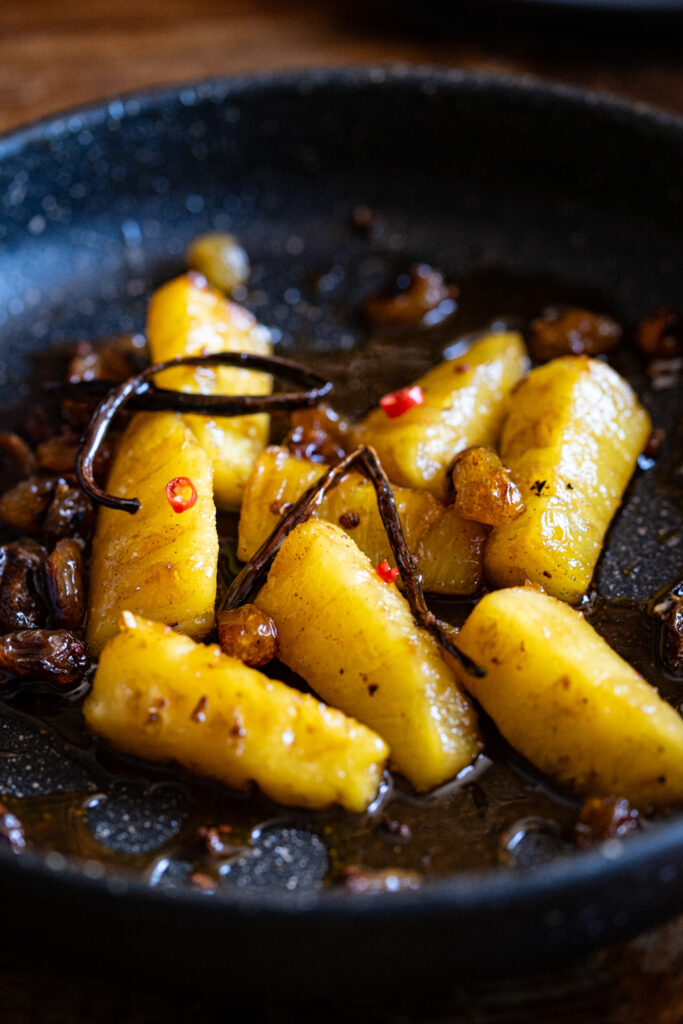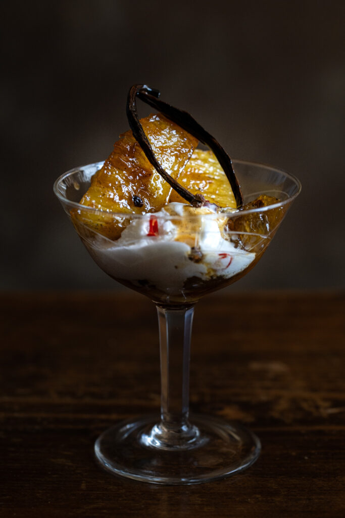 Ananas caramellato e rum con vaniglia e grani di pepe di Sichuan