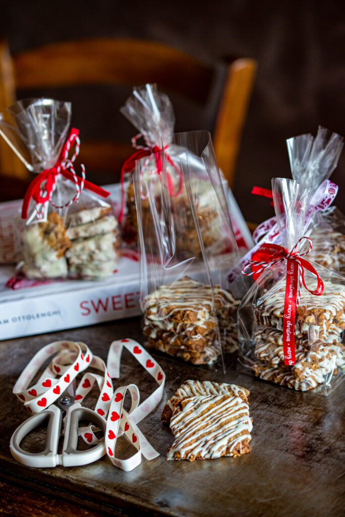 I biscotti con avena mirtilli rossi e cioccolato bianco sono una ricetta infallibile di Y. Ottolenghi che mi fa fare ogni anno un gran figurone!