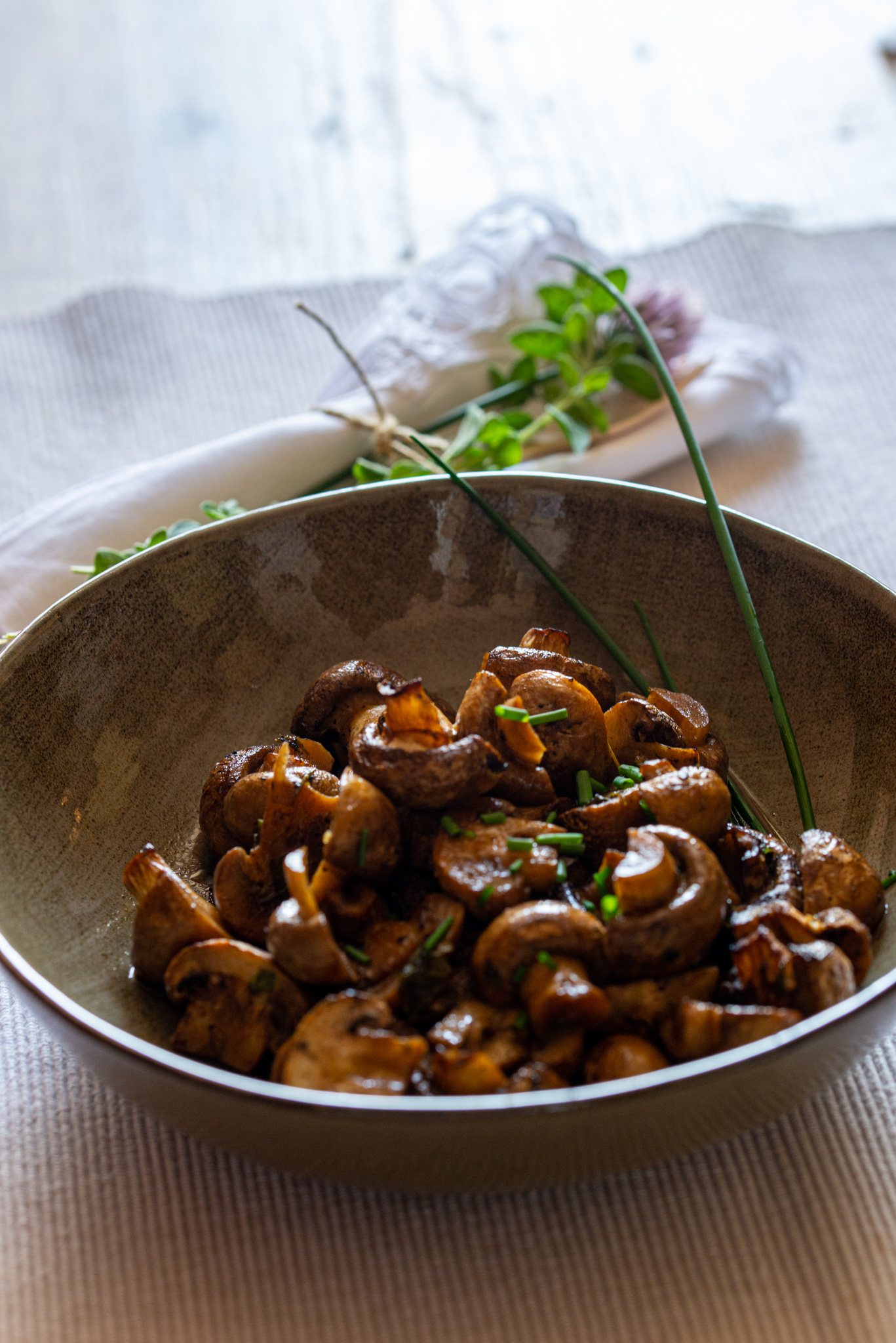 In ultimo ho pulito i funghi e li ho tagliati a metà. Ho preso uno spicchio di aglio nero, l’ho schiacciato e l’ho sciolto in un cucchiaio di acqua calda. Ho aggiunto 2 cucchiai di olio, sale, pepe e abbondante prezzemolo tritato e poi ho versato sui funghi e cotto in forno per circa 20 minuti a 180 gradi.