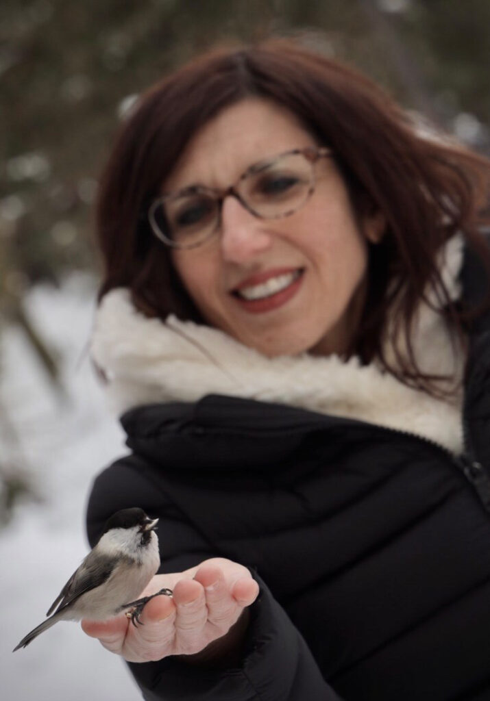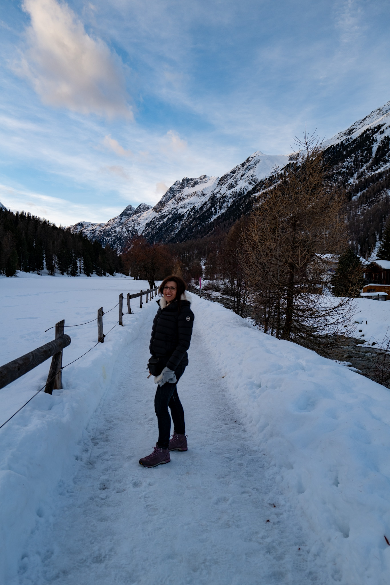 Ho respirato a fondo e i miei polmoni hanno ricominciato a scoppiare di vita. E difronte a tutto quel bianco i miei occhi hanno ripreso a distinguere la vivacità dei colori, il verde degli aghi dei pini, il rosso acceso del trenino che collega ogni singolo paesino della valle, il nero degli uccellini che venivano a beccare direttamente dalla mia mano. E mi sono divertita ad affondare i piedi in tutta quella neve soffice e pulita, come fosse una tela bianca sulla quale disegnare con le impronte delle mie orme. E finalmente, dopo un mese difficile, ho sorriso grata di tanta bellezza che solo la natura può regalarci.