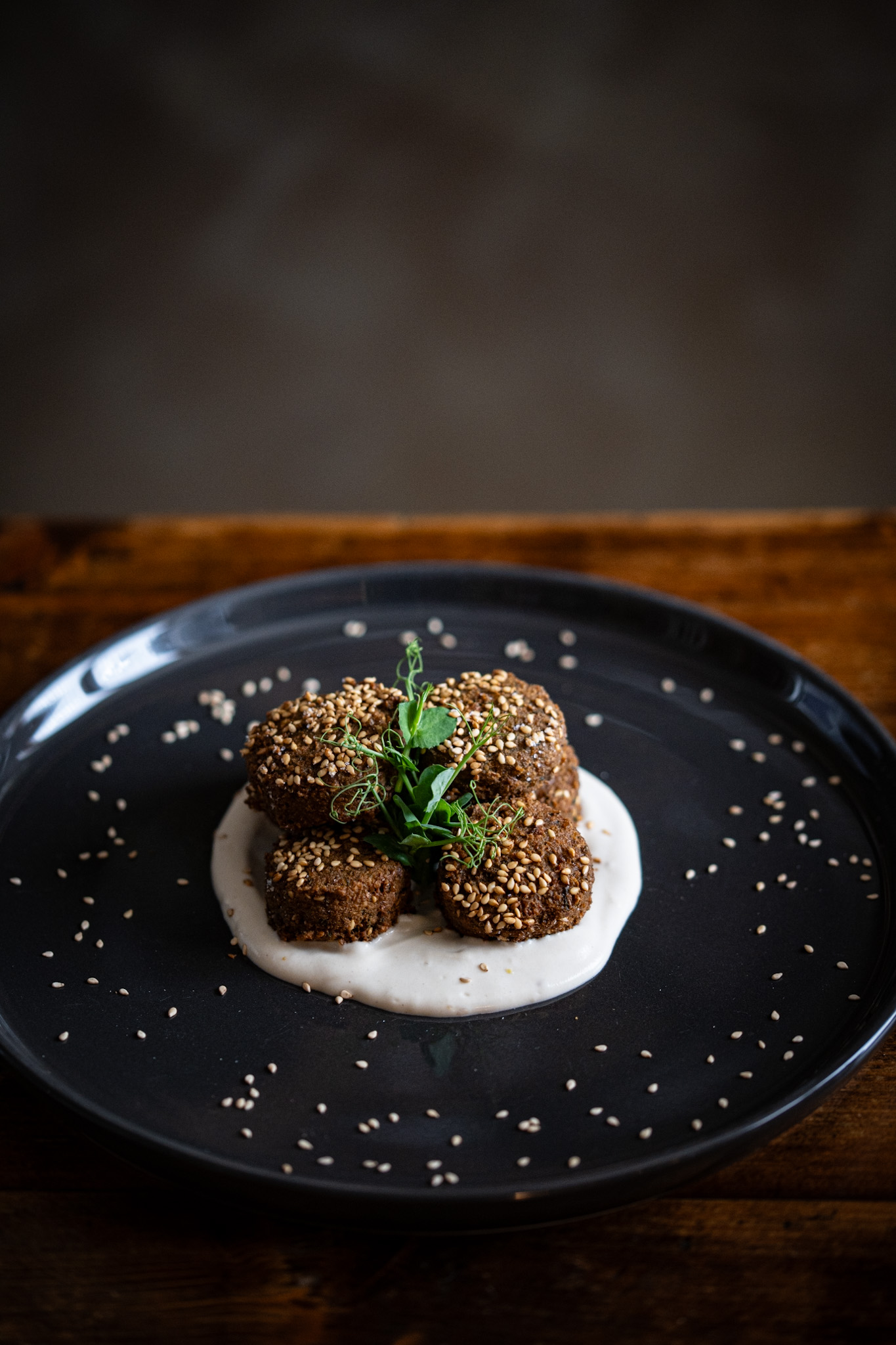 E ora immaginatevi di sedervi ad un tavolo del nostro Homerestaurant e sorseggiare un aperitivo mentre aspettate il primo antipasto… lo sentite quel caldo profumino che arriva dalla cucina? Sono i miei falafel, serviti con una salsa tahini.