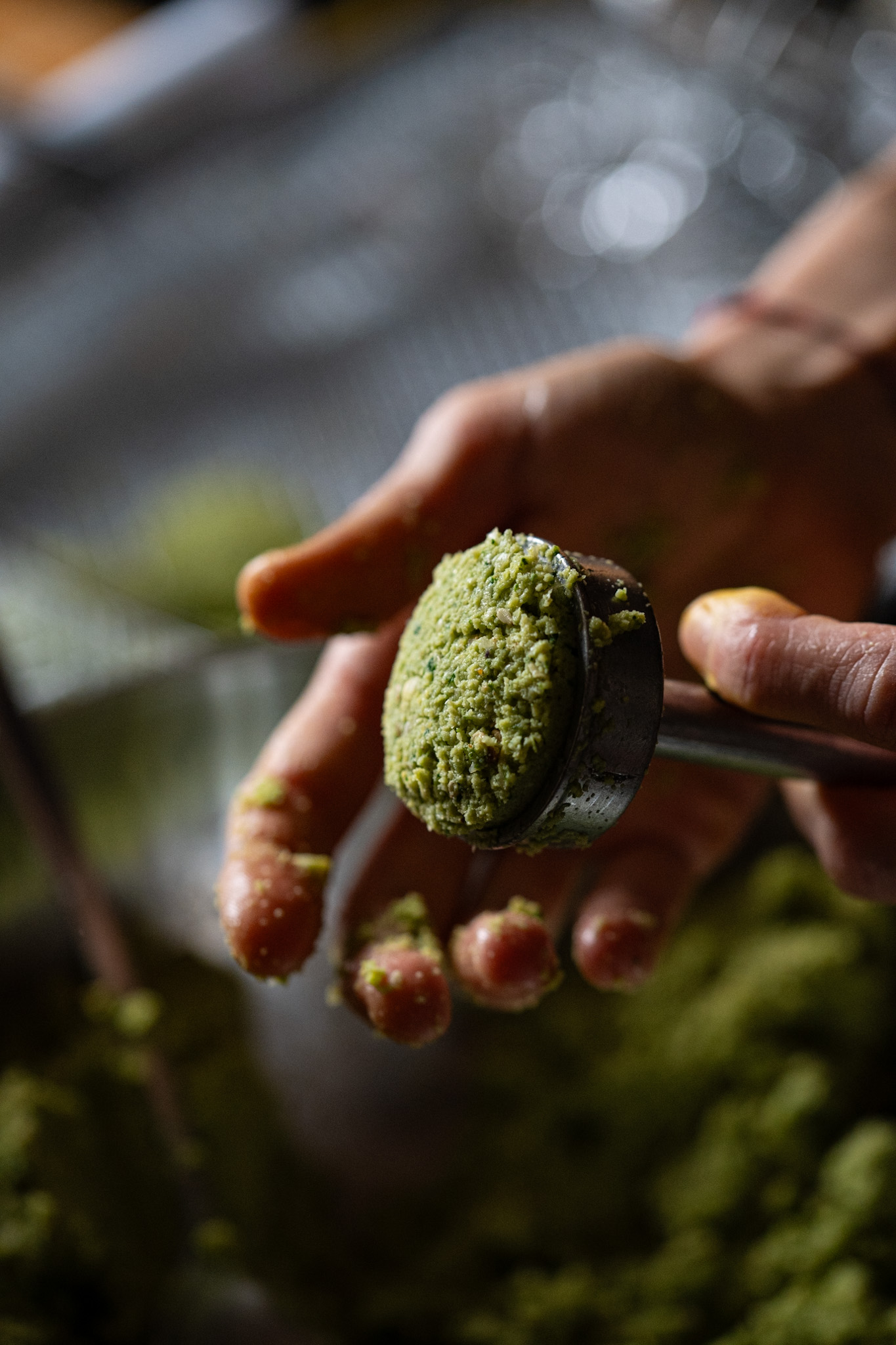 –Per i falafel i ceci non vanno lessati. Reidratateli per almeno 12 ore, poi scolateli e frullateli.