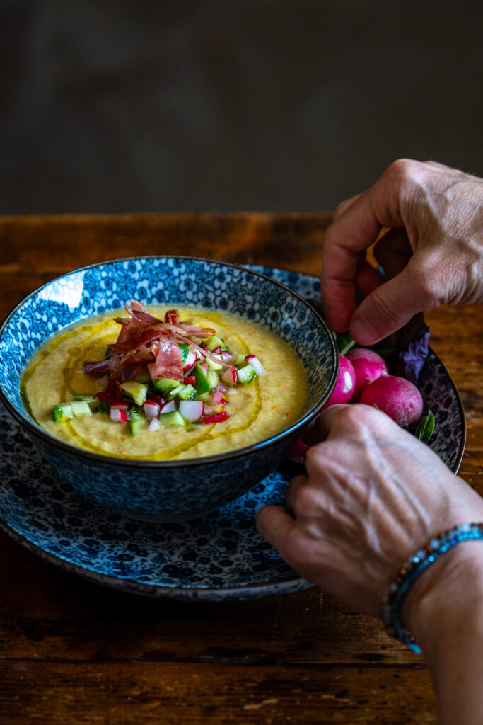Il Gazpacho al melone è un piatto interessante che cucchiaio dopo cucchiaio vi conquista con contrasti e consistenze diverse.