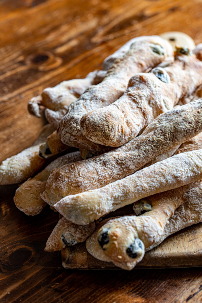 C’è un piccolo forno a Milano, nei pressi del teatro dove lavoro, che fa dei grissini un po’ irregolari, molto invitanti, alle olive e alle noci, così appetitosi che quando inizi a mangiarli non riesci più a fermarti. Li compravo dopo il lavoro con l’intenzione di portarli a casa invece poi finivo per sgranocchiarli tutti in treno.