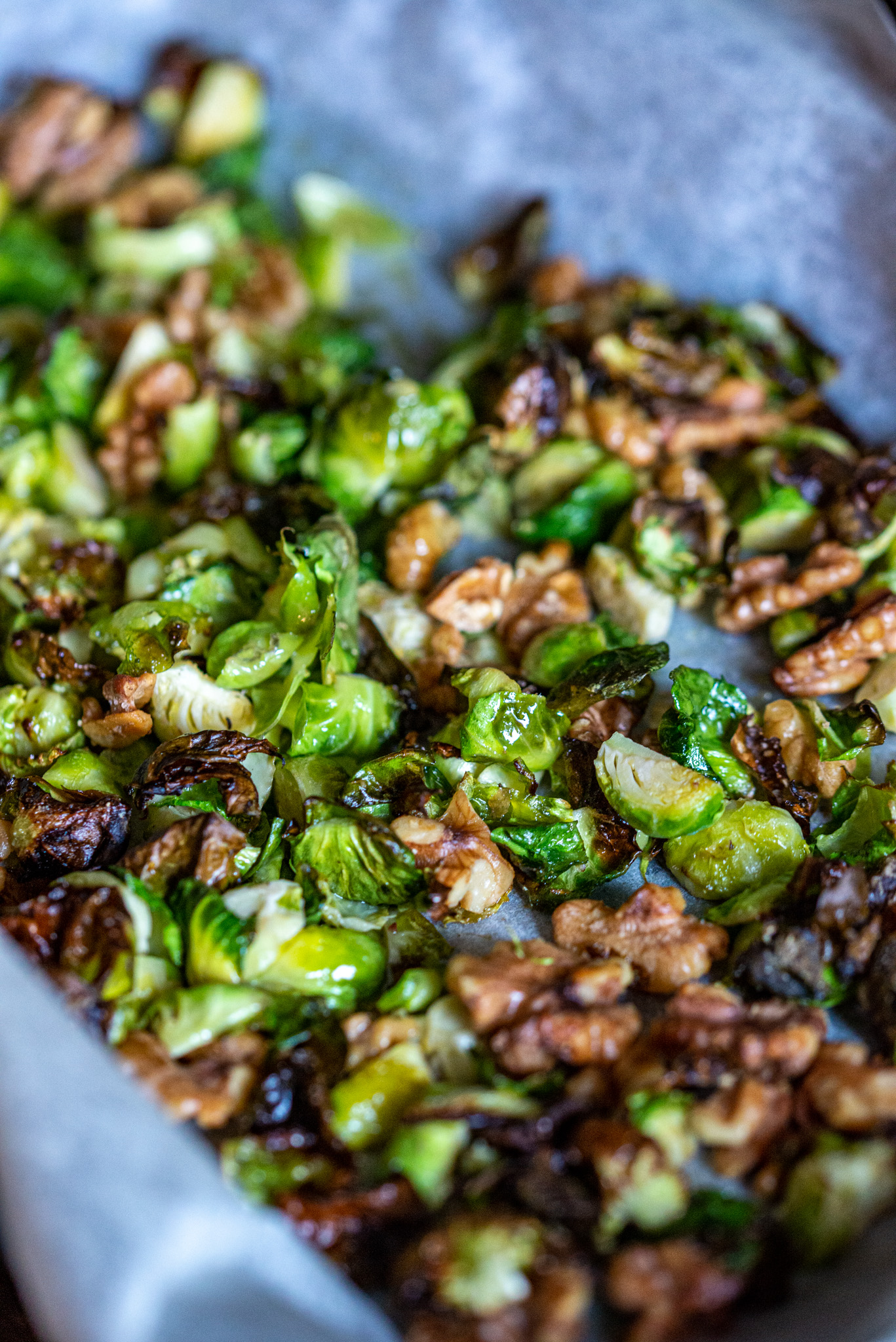 Oggi la mia spesa è verde! Ho fatto scorta di ortaggi di stagione per preparare la mia insalata di Cavoletti di Bruxelles. Li utilizzeremo in due versioni, cotti e…crudi, li avete mai provati? Le foglie, soprattutto quelle interne sono più dolci e stanno bene in qualsiasi insalata. Quelle esterne cotte al forno diventano croccanti e insieme alle noci oleose creano un mix davvero interessante.