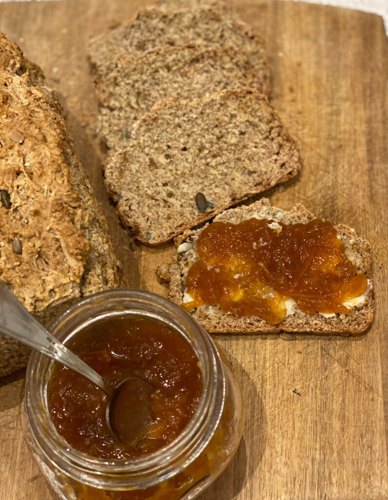 L’Irish soda bread è un pane denso e sano con un sapore ricco che si accompagna con tutto. Si fa in una manciata di minuti, si mescola con un cucchiaio direttamente nella ciotola, si versa in uno stampo e si cuoce immediatamente in forno senza aspettare nessuna lievitazione. Questo pane è di una comodità incredibile e si presta ad ogni interpretazione personale. Potete arricchirlo con semi, uvetta, frutta secca specialmente noci, fichi, datteri, cranberries…per me così, semplice, con una manciata di semi misti è perfetto!