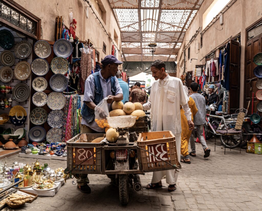 Il suk è un’esplosione di colori, sapori e odori. Ho attraversato ogni giorno il labirinto di vicoli sempre pieno di turisti, asini, carretti e scooter. I commercianti offrono articoli in pelle, tessuti e ceramiche in colori bellissimi e vivaci, cesti intrecciati a mano, piramidi di spezie dal profumo inebriante, montagne di olive verdi, nere e rosse, ceste di limoni sotto sale gialli e brillanti.