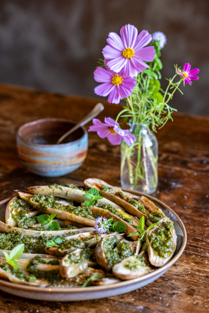 Prezzemolo fresco, acciughe, capperi olio extravergine d’oliva e aglio si mescolano con un ingrediente inaspettato… l’uvetta. Questa piccola dolcezza conferisce alla salsa profondità di sapore ed equilibrio.Prima di iniziare a preparare la salsa, ho messo a bagno l’uvetta in due cucchiai di aceto balsamico.