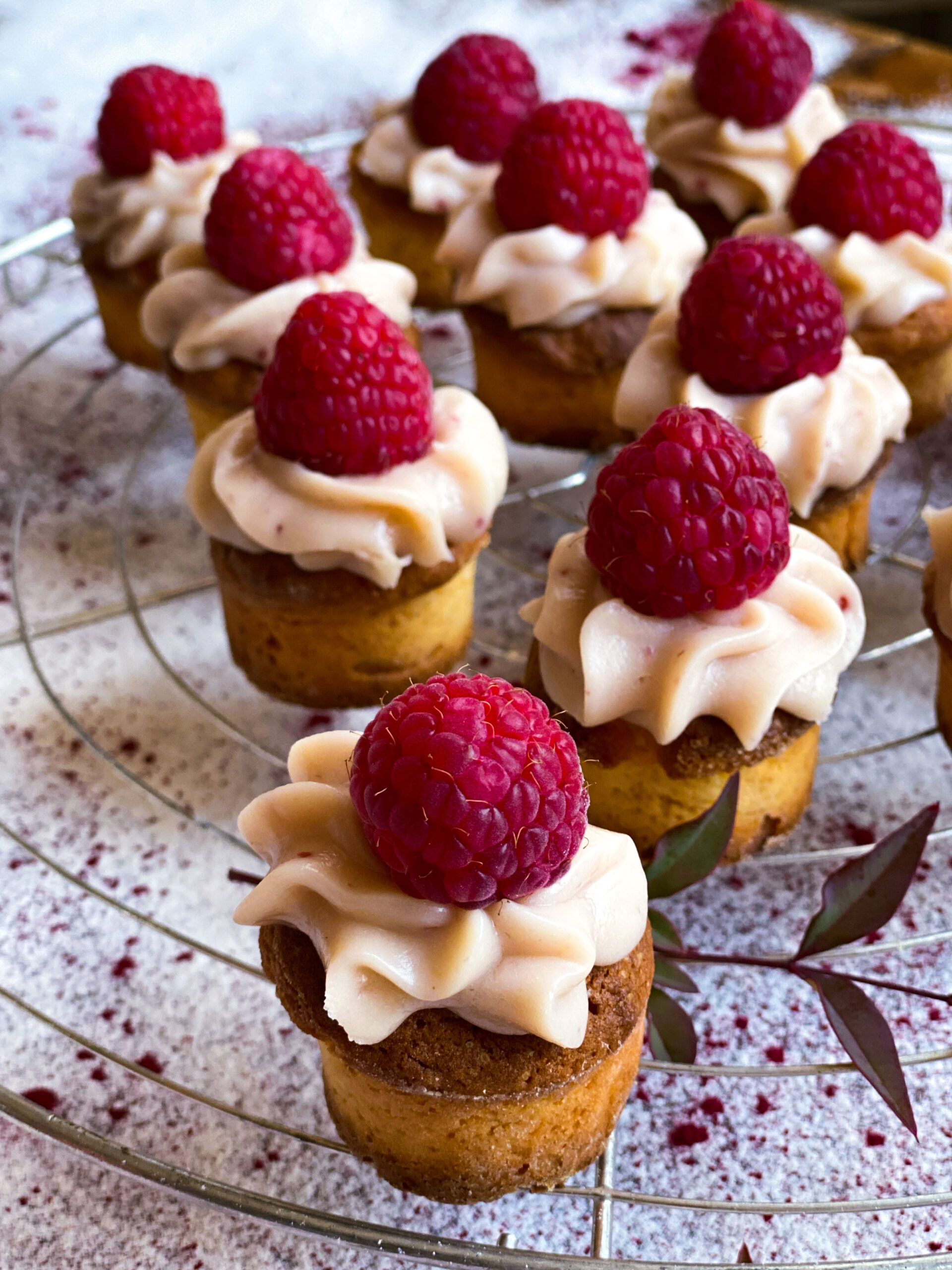 Mini tortine allo yogurt e lamponi di Diana Henry 125 gr burro 225 gr zucchero Scorza di limone grattugiata 2 uova grandi 300 gr farina 2 cucchiaini di lievito 115 gr yogurt naturale 200 gr lamponi