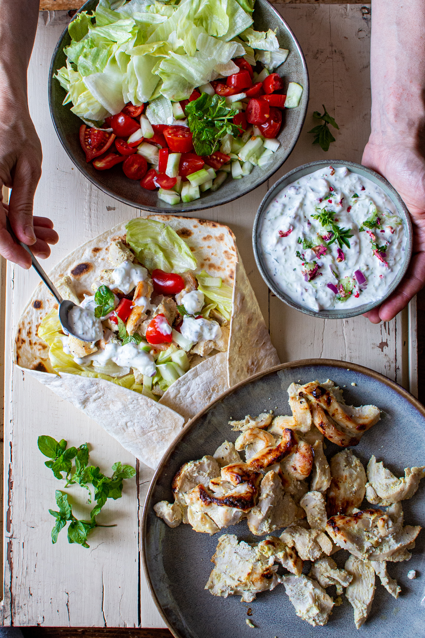 Servite con crostini croccanti, grissini, polpette, verdure fresche oppure, se volete preparare un pranzo veloce, farcite un wrap con pollo marinato allo yogurt (ricetta sotto nelle Note), lattuga iceberg, foglioline di menta fresche, pomodori, cetrioli e qualche cucchiaio di questa deliziosa Salsa allo Yogurt. E’ una ricetta semplice e gustosa che mette d’accordo proprio tutti!