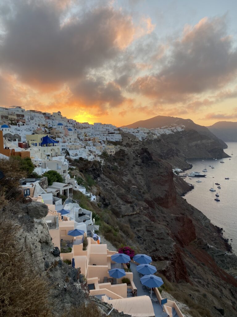 Quest’isola è un gioiello.. Mi sono emozionata aspettando l’alba a Oia quando le mille luci della città addormentata lasciano il posto ai primi raggi di sole, mi sono persa a Pyrgos sbirciando le botteghe artigiane, incantata nel guardare le piante di cappero aggrappate così tenacemente alla roccia e le Bouganville che colorano di fucsia i muri delle case bianche di tutta l’isola.