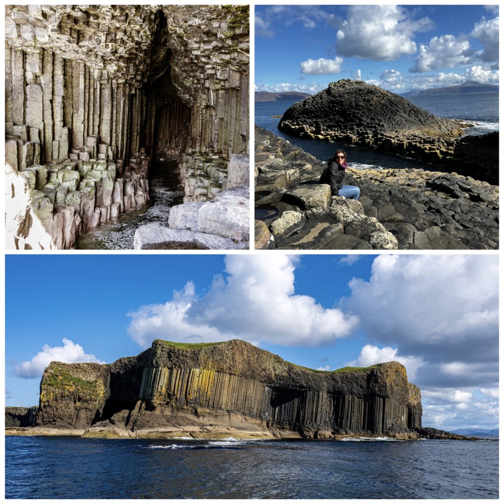 L’emozione più intensa e’ stata quando, dal mare, ho cominciato ad intravedere la sagoma della grotta di Fingal. Le incredibili pareti di basalto, scolpite dal costante abbraccio del mare, con le loro forme uniche e irregolari, la luce del sole che danza attraverso le aperture delle grotte, creando un balletto di ombre e riflessi magici, le rocce, con le loro varie sfumature di colore che sembrano custodi di segreti millenari hanno incantato profondamente la mia anima. E mentre camminavo esplorando la grotta nella mia testa risuonavano le note dell’ouverture Le Ebridi di Mendelssohn. Paesaggio e musica intrecciati in perfetta armonia, creando un momento di connessione profonda tra natura e arte.