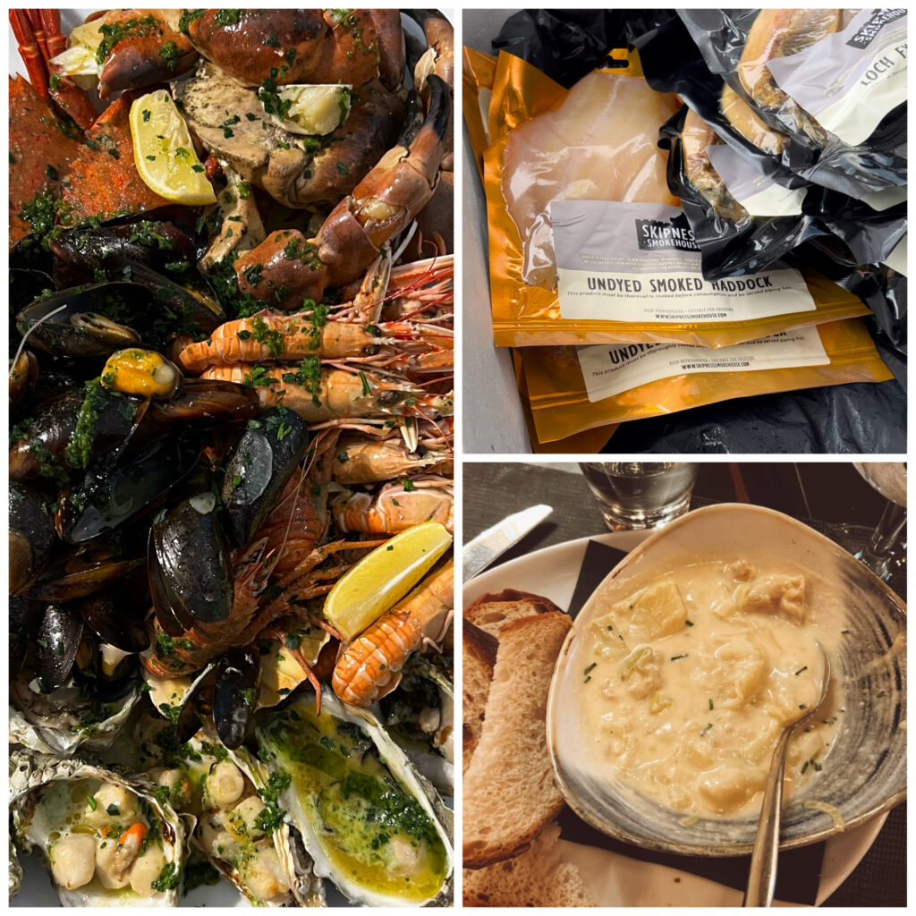 Ho assaporato la Scozia è stato davvero molto appagante perché la cucina è varia e molto gustosa. Il pesce è sempre freschissimo, presentato spesso in ampi vassoi e il granchio è sempre presente.