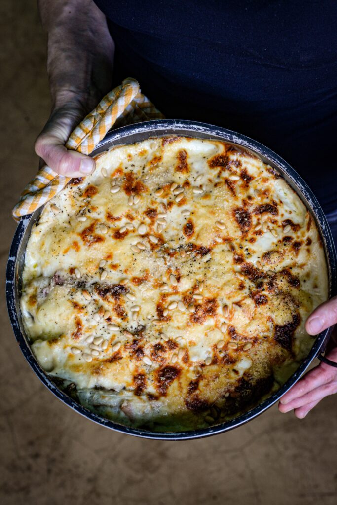 È un piatto decisamente appagante. L’indivia, all’interno di questo sformato, rimane dolce e tenera e bilancia bene la sapidità dello speck e il tocco piccante della senape. E poi c’è tanta besciamella cremosa che accoglie i piccoli cespi… chi dice che le verdure sono tristi???