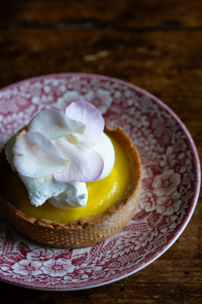 Con una sac à poche ricoprire la crema con la meringa all’italiana. Fiammeggiare la meringa con un cannello oppure per pochi secondi sotto il grill del forno.