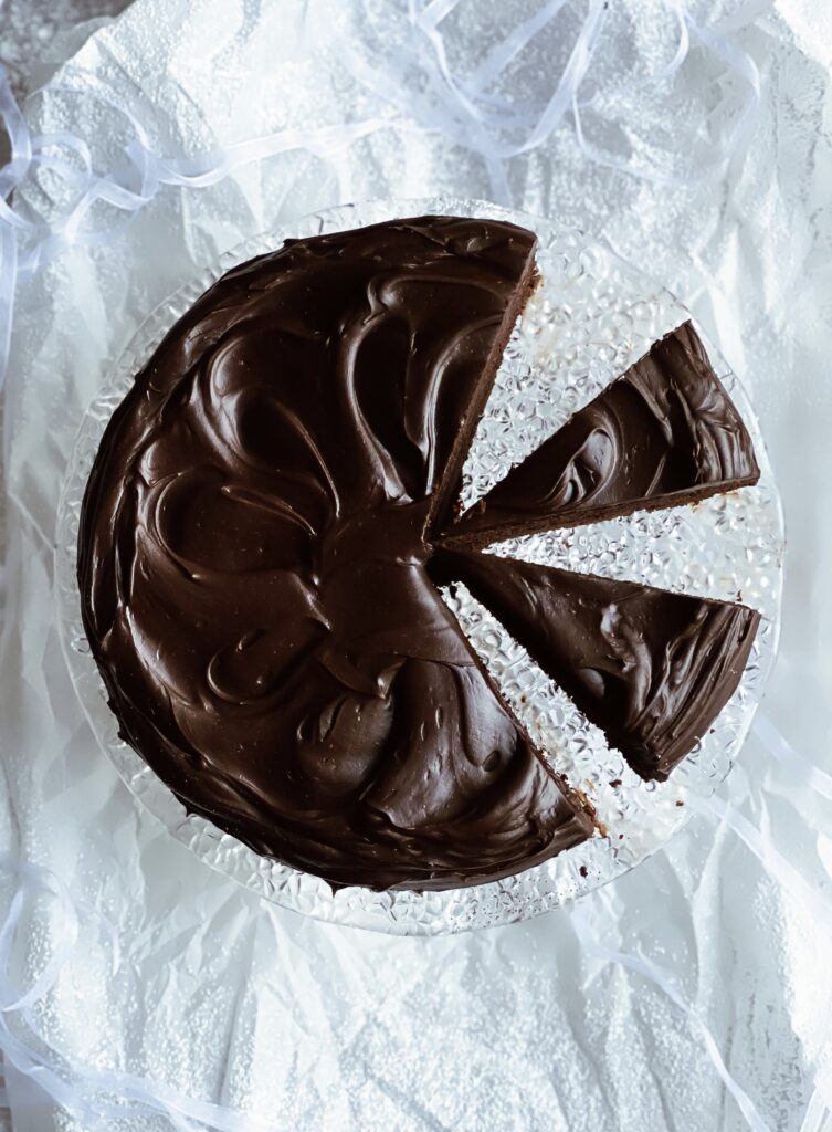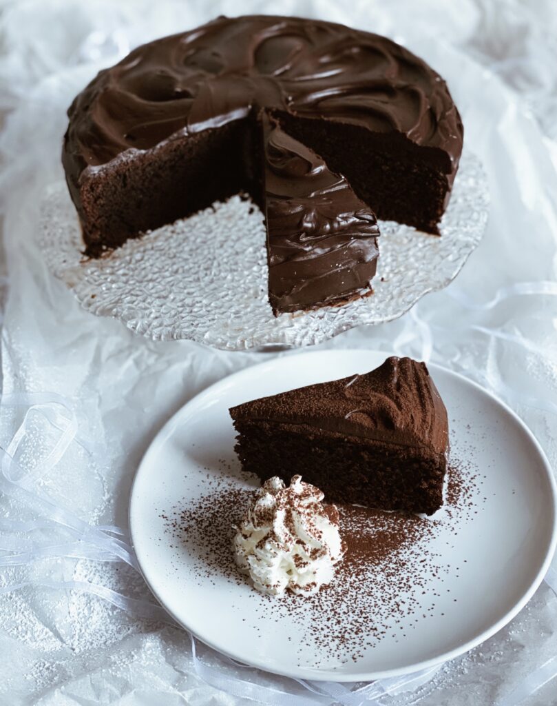 Oggi ho riordinato la cucina. Scaffale dopo scaffale. Stampi di torte, pentole, posate, vassoi… Ora ogni cosa è al suo posto. Chissà per quanto però, io litigo con l’ordine! Capite che dopo un lavoro così una torta al cioccolato me la meritavo proprio, ma non una torta qualunque. Volevo una torta morbida, dal sapore intenso. E scenografica, con tanto di glassa lucida. E facile. Veloce. E visto che ho già pulito abbastanza oggi, senza sporcare troppo. Per questa torta serve solo una ciotola e una frusta. Si versano gli ingredienti in ordine, si mescola, si inforna. Si glassa. Si mangia. Il risultato sarà sbalorditivo. Tiepida è deliziosa, il giorno dopo perfetta! E se, come me, non volete farvi mancare nulla ci sta pure un ciuffetto di panna montata. Dovrete litigare per aggiudicarvi l’ultima fetta!