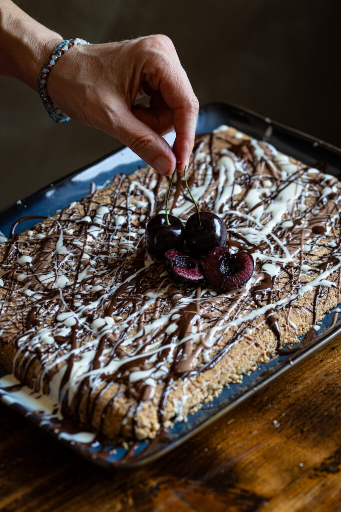 La Torta di Lodi, un dolce antichissimo a base di mandorle con la consistenza simile alla “sbrisolona”, forse solo un po’ più morbida, nonostante l’assenza di lievito. Dopo la cottura potrete sbizzarrirvi nella decorazione, io ho usato tre tipi di cioccolato fusi e versati a filo sulla superficie del dolce.