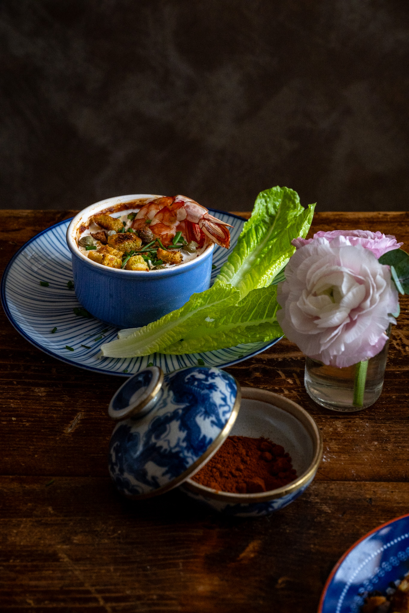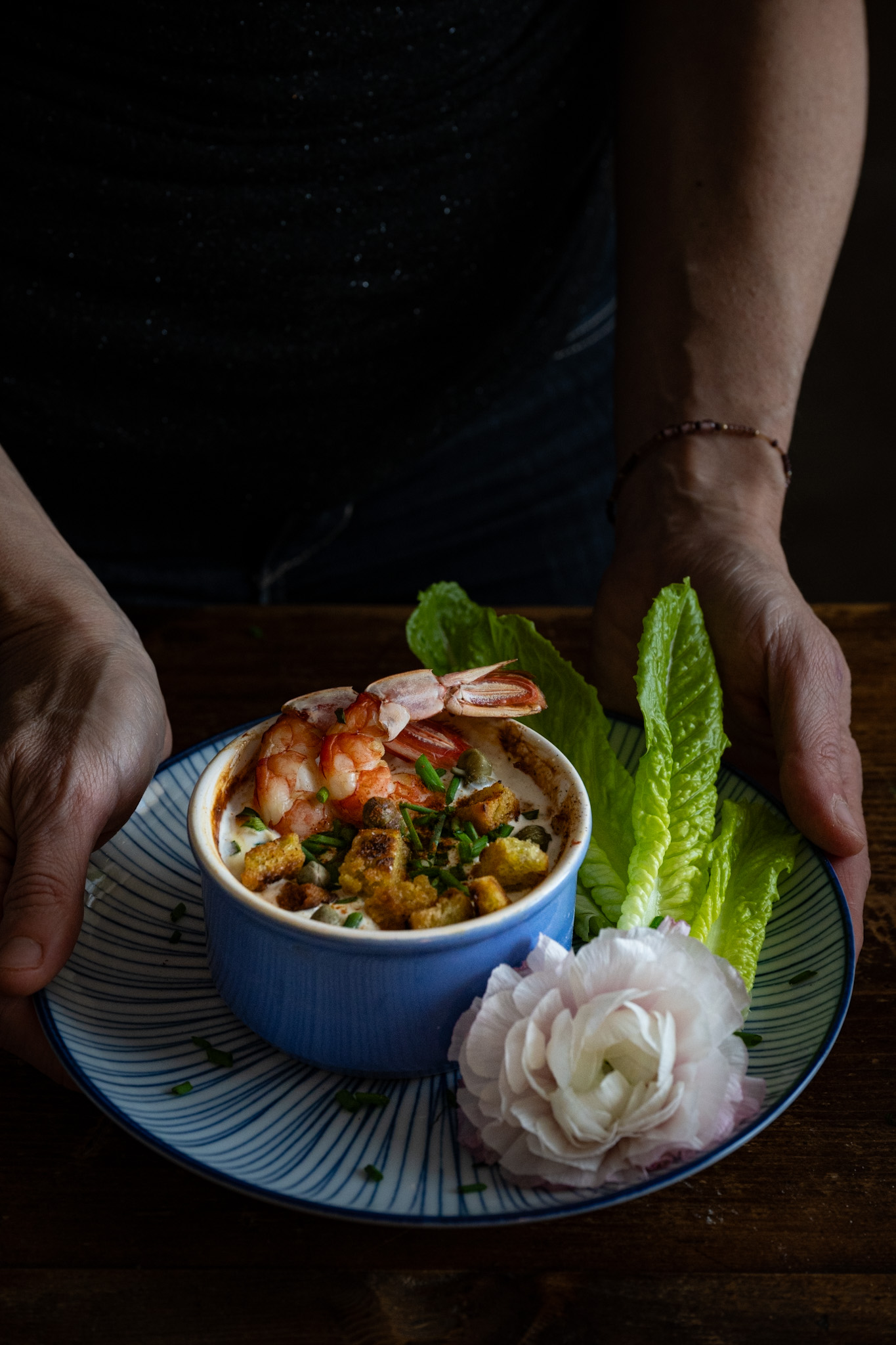 Oeufs en Cocotte aux Grevettes Grises- Uova in cocotte con gamberi grigi, una ricetta di Michel Roux che incarna l’eleganza della cucina francese. Vi serviranno degli stampi speciali per cocotte, uova freschissime e gamberi grigi per sfornare una piccola magia. Si può preparare tutto in anticipo e infornare le cocotte appena i vostri ospiti avranno preso posto a tavola. La ricetta è molto semplice ed io l’ho adattata al mio gusto con qualche piccola variante